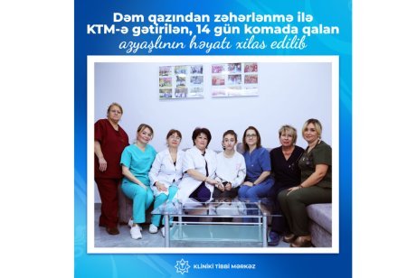 Dəm qazından zəhərlənmə ilə Kliniki Tibbi Mərkəzə (KTM) gətirilən, 14 gün komada qalan azyaşlının həyatı xilas edilib.