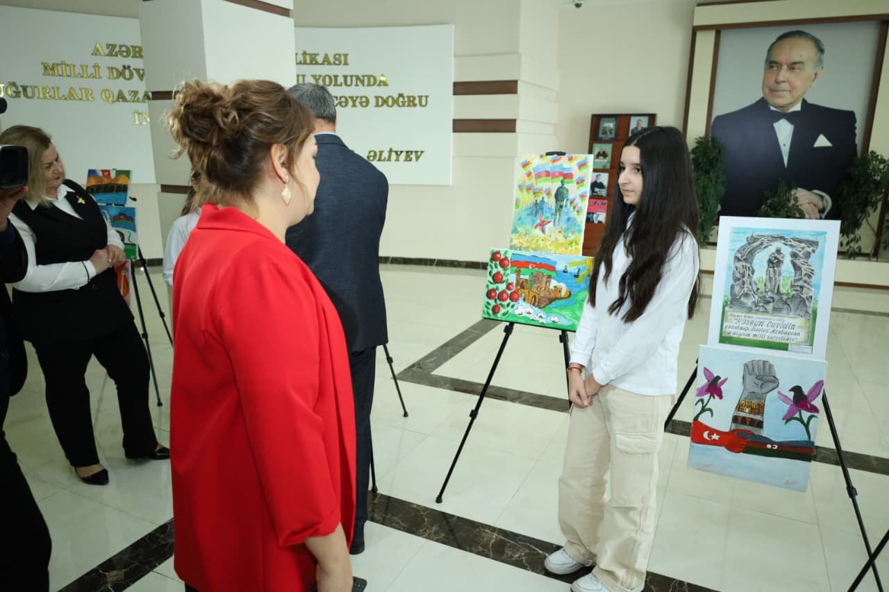 Mərkəzin foyesində şagirdlərin əl işlərindən ibarət rəsm sərgisinə baxış keçirilib. Sərgidə Bakı şəhəri 2 nömrəli uşaq-gənclər inkişaf mərkəzi PHŞ-nin "Rəsm" dərnəyi üzvlərinin, dünya məktəbinin və müasir İnnovasiyalar litseyinin şagirdlərinin əl işlərinə baxiş keçirildi.