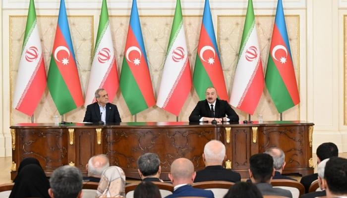 Azərbaycan Prezidenti İlham Əliyev və İran Prezidenti Məsud Pezeşkian aprelin 28-də mətbuata birgə bəyanatlarla çıxış ediblər.