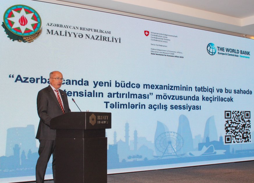 Dünən Azərbaycan Respublikasının Maliyyə Nazirliyi, İsveçrənin İqtisadi Məsələlər üzrə Dövlət Katibliyi (SECO) və Dünya Bankının birgə təşkilatçılığı ilə “Azərbaycanda yeni büdcə mexanizminin tətbiqi və bu sahədə potensialın artırılması” mövzusunda təlimlərin açılış sessiyası keçirilib.