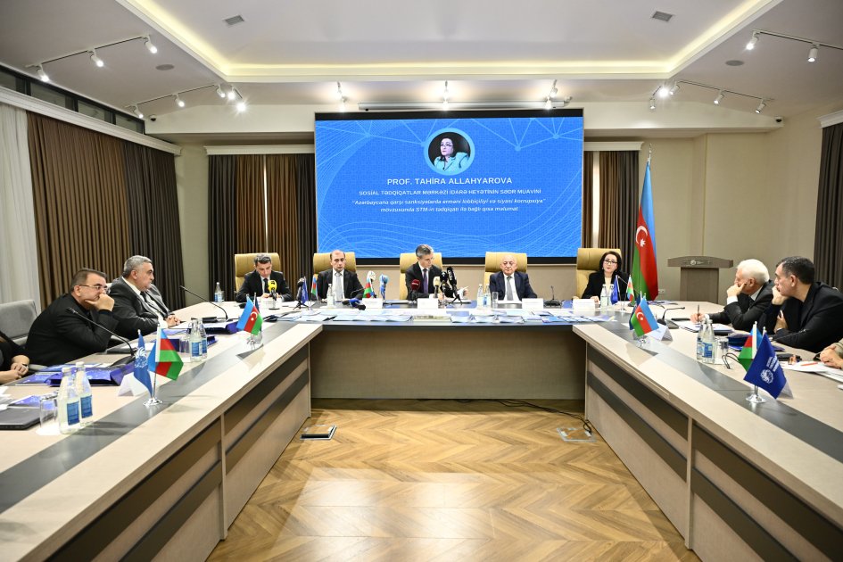 Tədqiqatın müəllifi, STM-in İdarə Heyəti sədrinin müavini, professor Tahirə Allahyarova “Azərbaycana qarşı sanksiyalarda erməni lobbiçiliyi və siyasi korrupsiya” adlı kitabla bağlı məlumat verib. O qeyd edib ki, Azərbaycanın adını müxtəlif beynəlxalq insan hüquqları təşkilatlarında, ədalət və cinayət məhkəmələrində hallandırmaq, hesabat və reytinqlərdə neqativ təqdim etmək, parlamentlərdə qərəzli qətnamələr qəbul etdirmək cəhdlərinin sayı-hesabı yoxdur. Qarabağın işğaldan azad edilməsindən sonra qlobal erməni diasporunun revanşizm isterikası fonunda bu fəaliyyət çoxsaylı istiqamətlərdə dəfələrlə güclənib.