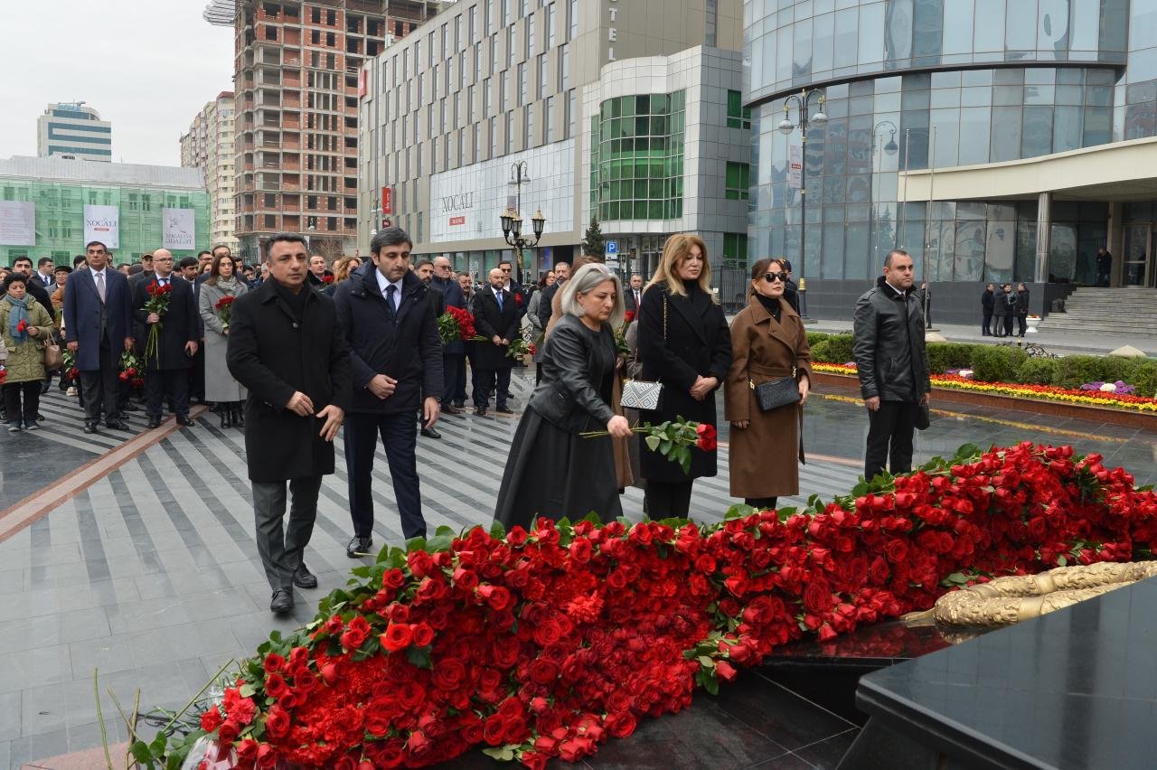 Milli Məclisin kollektivi Xocalı soyqırımı qurbanlarının əziz xatirəsini dərin ehtiramla yad edib, abidənin önünə gül dəstələri düzüb.